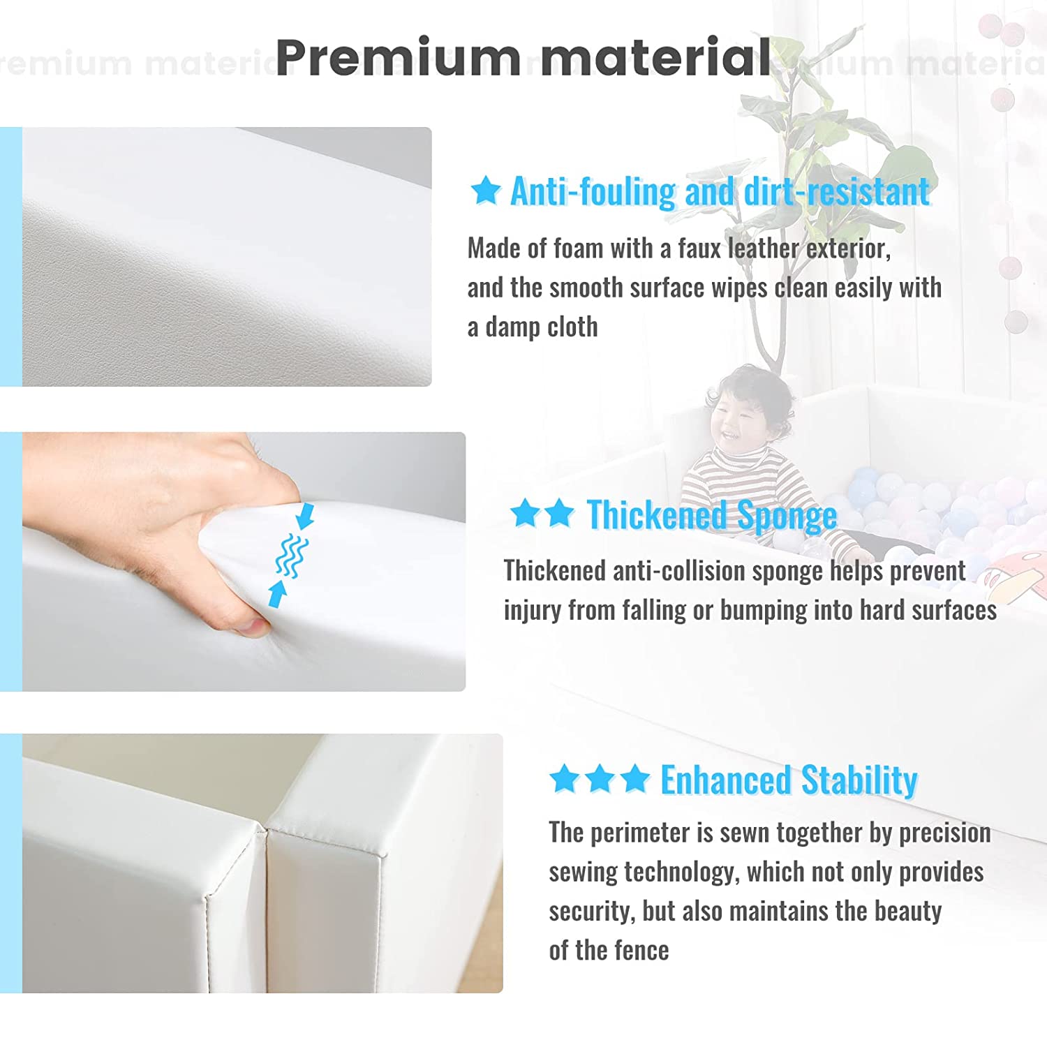 Dieses Bällebad für Kinder ist aus hochwertigem Hartschaum gefertigt und mit PU-Leder veredelt.