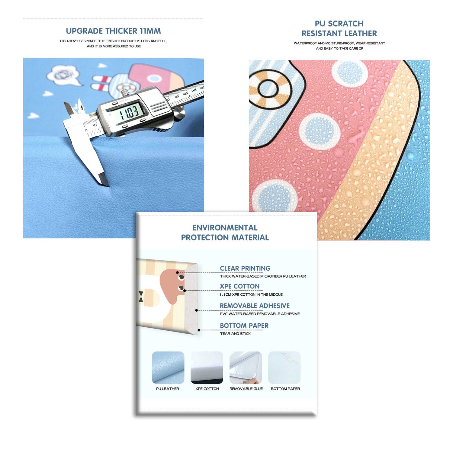 Gepolsterte Wandkissenaufkleber sind eine einzigartige und unterhaltsame Möglichkeit, das Zimmer Ihres Kindes zu dekorieren und gleichzeitig für zusätzliche Sicherheit und Schallschutz zu sorgen. Diese Aufkleber bestehen aus einer dicken Schaumstoffpolsterung und sorgen dafür, dass sich Ihr Kind nicht verletzt, wenn es versehentlich gegen die Wand stößt. Die Designs auf der Vorderseite der Aufkleber eignen sich perfekt für Kinderzimmer und zeigen lustige Tierthemen, die Kinder jeden Alters begeistern werden.