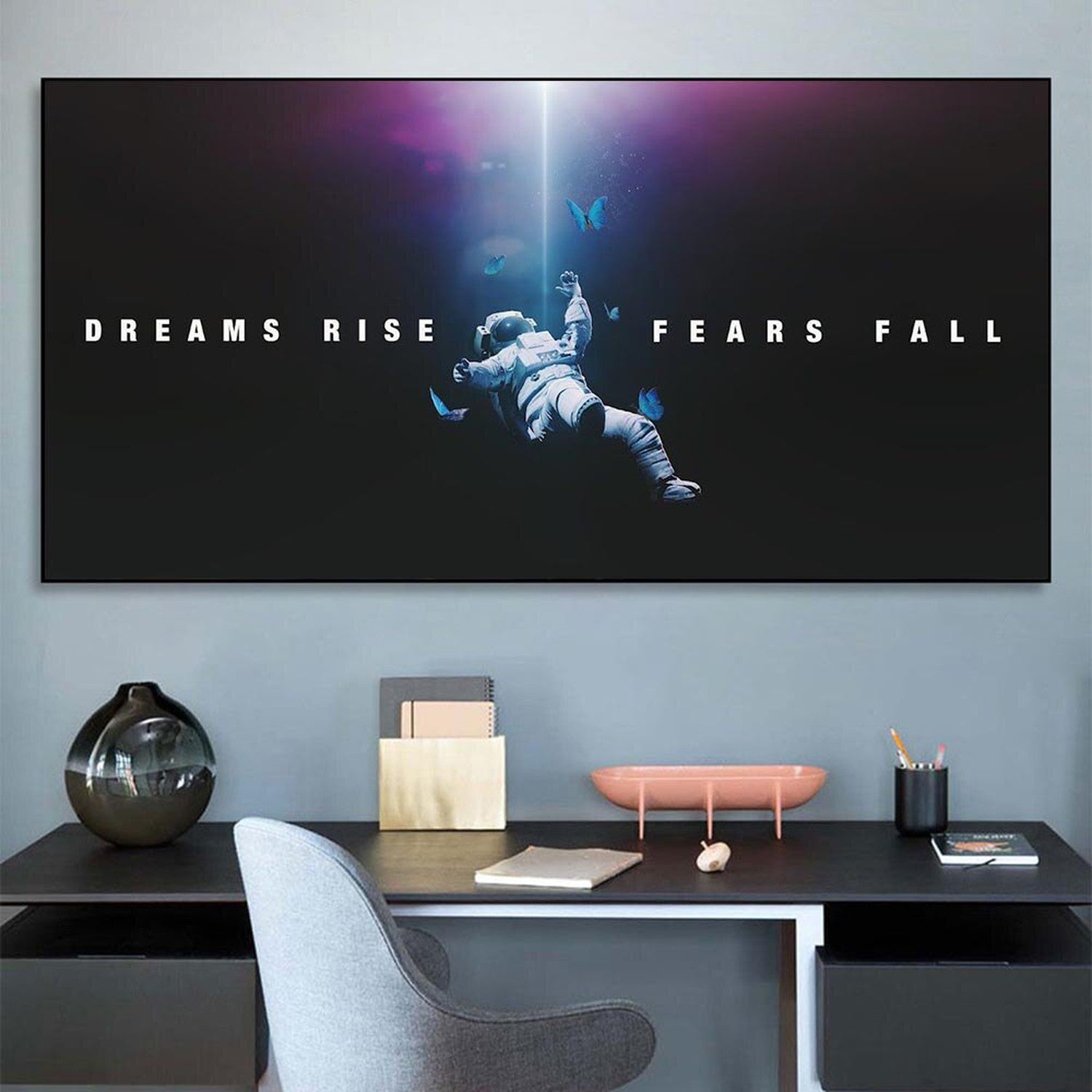 With Dreams Rise Fears Fall: Astronaut Poster, you’re investing in high-quality art that transforms any wall into a sophisticated display of style. Each canvas piece is designed to bring your walls to life and make a bold statement in your home or office.