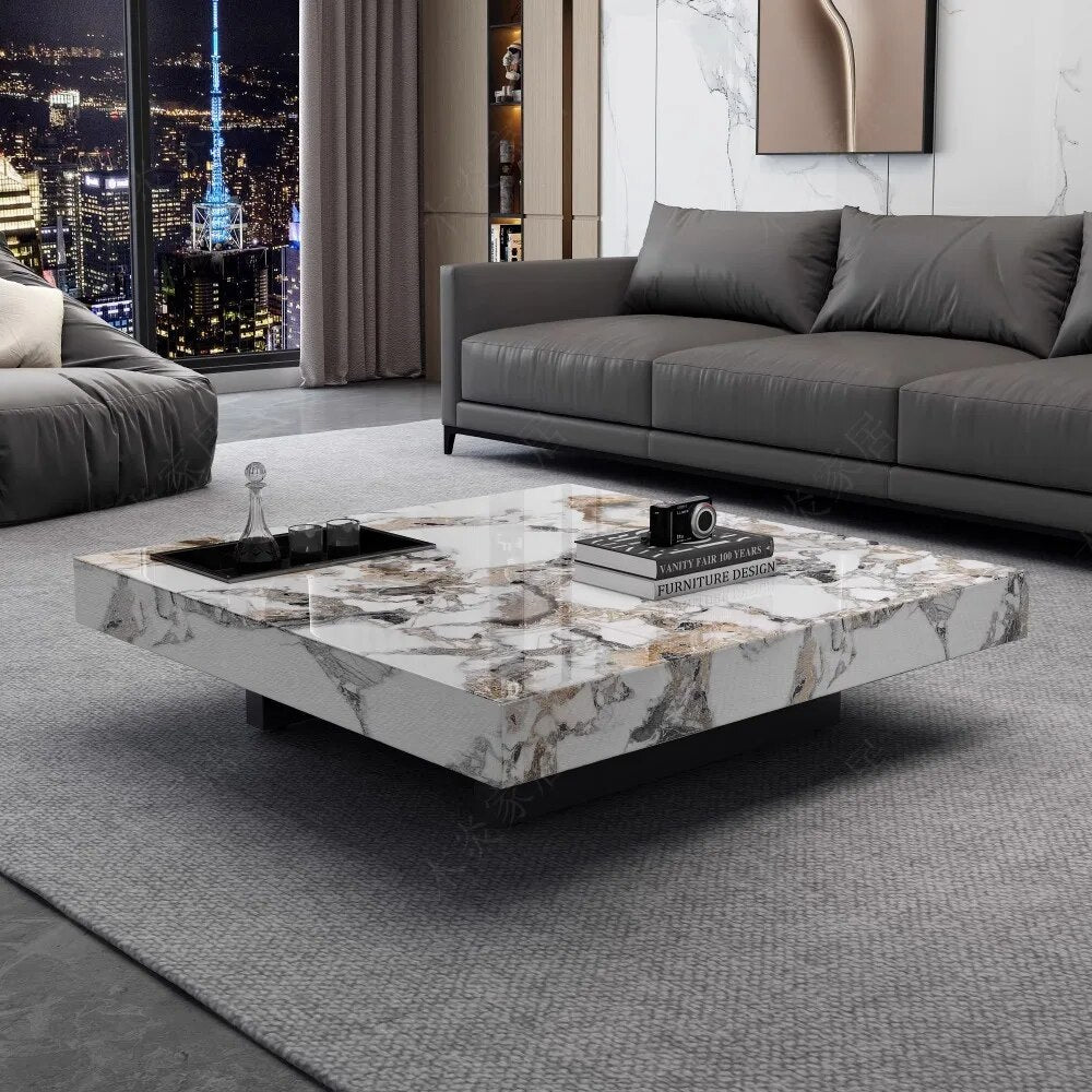 Elevate Your Living Space with the Marble Gloss Coffee Table - A Modern Marvel of European and American Style.