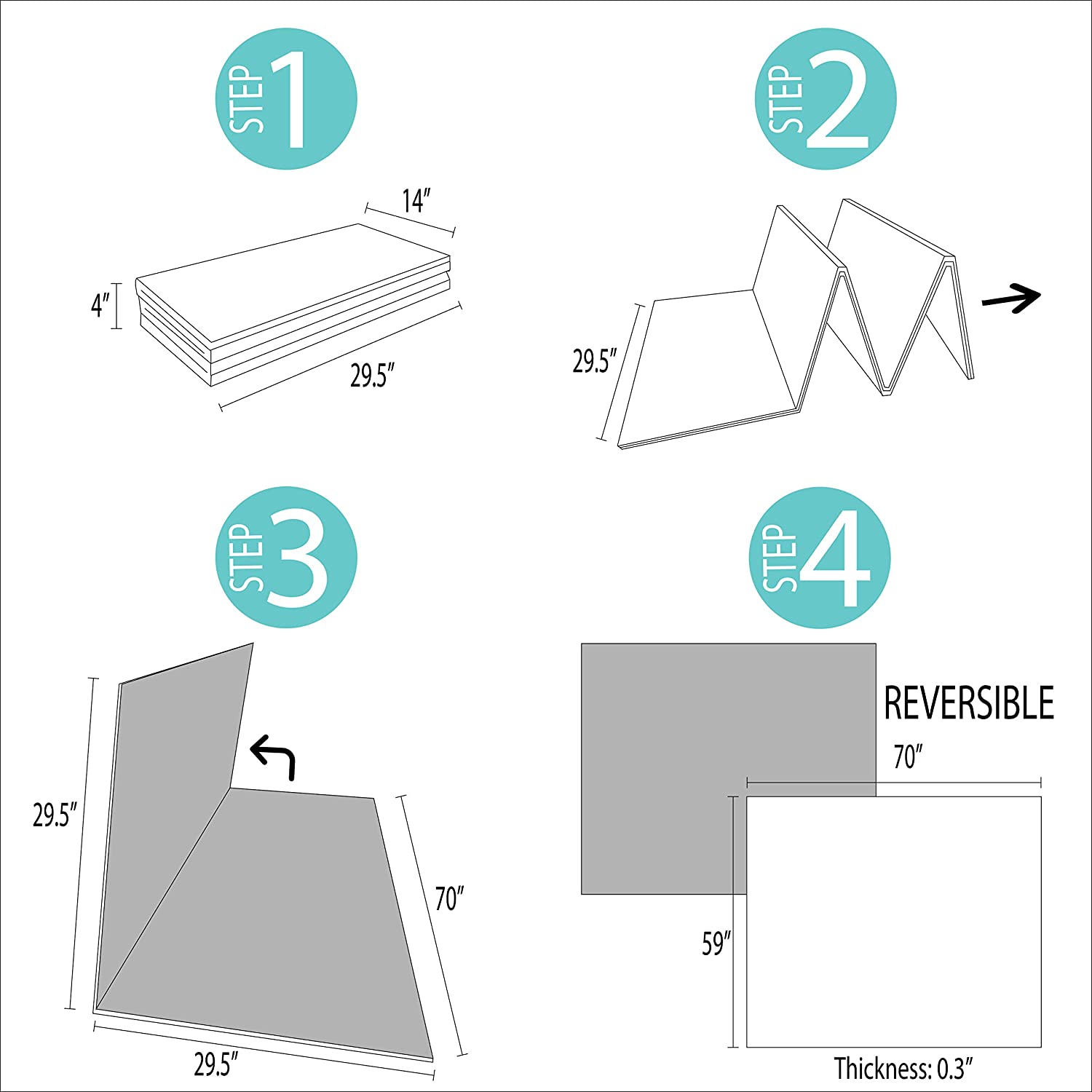Questo grande tappeto da gioco misura 70 per 59 pollici, offrendo al tuo piccolo ampio spazio per strisciare, giocare, fare un pisolino o trascorrere del tempo a pancia in giù.