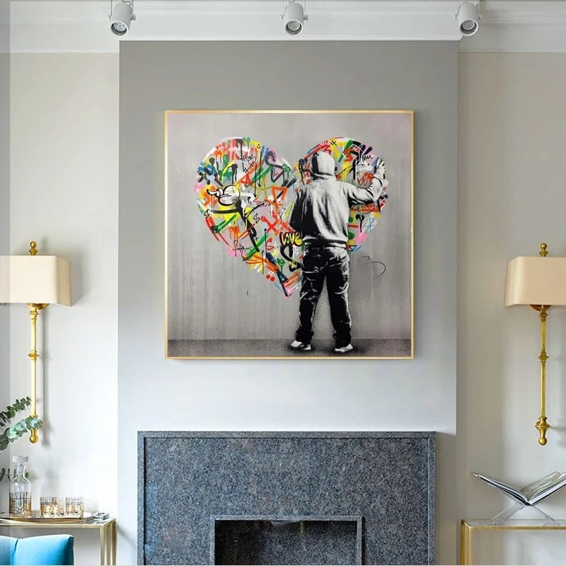 Presentiamo il nostro squisito Graffiti Art di un ragazzo dietro il Love Canvas Wall Art, il tuo accesso a una straordinaria gamma di Poster in Tela per Pareti progettati per infondere al tuo spazio un fascino e uno stile senza pari, trasformando le tue pareti in punti focali vibranti pieni di carattere e vitalità.