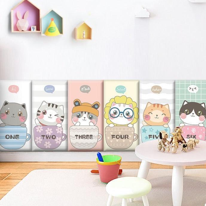 Cute Kitten Friends Kids Wall Padded Safety Cushions